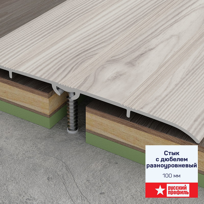Стык с дюбелем разноуровневый со скрытым креплением, 100 мм